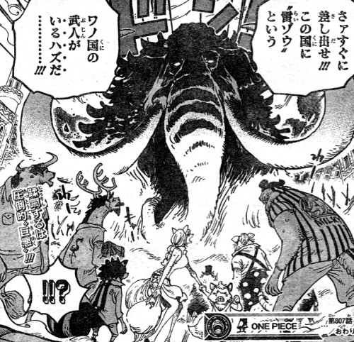 ジャックがゾウを襲った時「さあすぐに差し出せ!この国に”雷ぞう”というワノ国の武人がいるハズだ!」というセリフがありました。